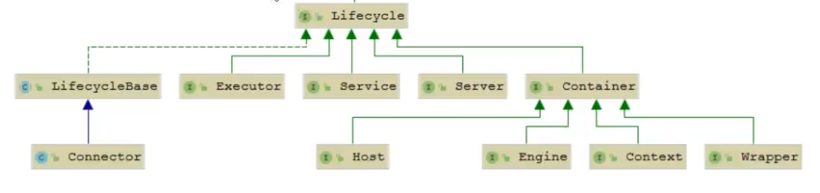 Server、Service、Container、Executor、Connector 组件都实现了改接口,也有了Lifecycle 接口核心方法: